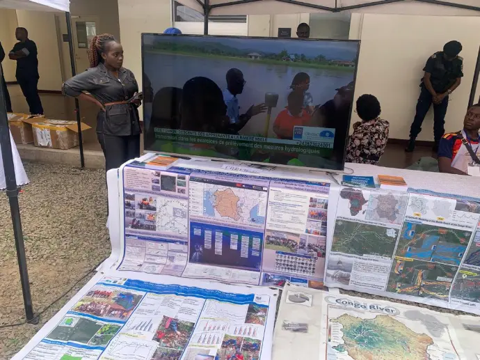 Au stand du CRREBaC et de l’ERE, l’on pouvait apercevoir les posters relatant les différents résultats de recherches déjà obtenus sur les ressources en eau du bassin du Congo, particulièrement l’outil Congo Basin Catchment Information System (CB-CIS), outil de gestion intégrée des ressources en eau dans le bassin du Congo et un véritable outil d’aide à la décision dans le domaine de l’eau.